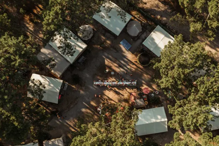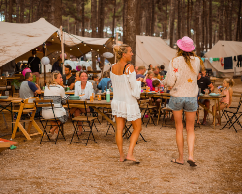 Alle lodges staan rondom een gezellig gezamenlijk terrein waar de kinderen kunnen spelen en waar je kan genieten van een hapje en drankje, een muziek optreden en de leukste activiteiten. Naast comfortabele loungeplekken vind je hier ook onze centrale tent met tafeltennistafels en dinerplekken.